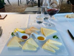 Op het terras van ristorant ‘Il Giardino’ genoot ik na met een glas Brunello di Montalcino en een ‘selezione di formaggi Pecorino’. Wetende dat ik morgen dwars door Val d’Orcia weer enkele witte wegen mocht gaan trotseren. Met recht bestempeld als nationaal beschermd erfgoed. Om die reden, maar ook ter bescherming van de natuurlijke omgeving zullen ze dan ook altijd onverhard & wit blijven. Dat zweet vlekt anders ook veel te veel op zwart asfalt.